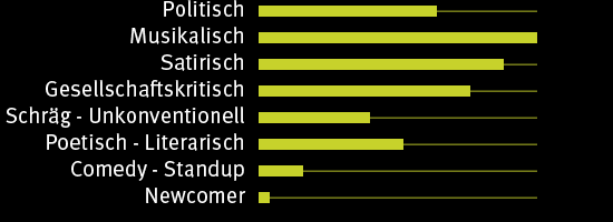 Schwerpunkt Musik-Kabarett: Mit Ukulele oder Piano, pointierter Lyrik sowie poetischer Frechheit stellt sich Sarah Hakenberg dem Publikum. Sie wirkt gewinnend, herzlich, liebenswürdig und charmant. Zugleich sind schwarzer Humor und satirische Bissigkeit ein Merkmal ihrer Auftritte, womit sie die Kabarett-Fans begeistert.