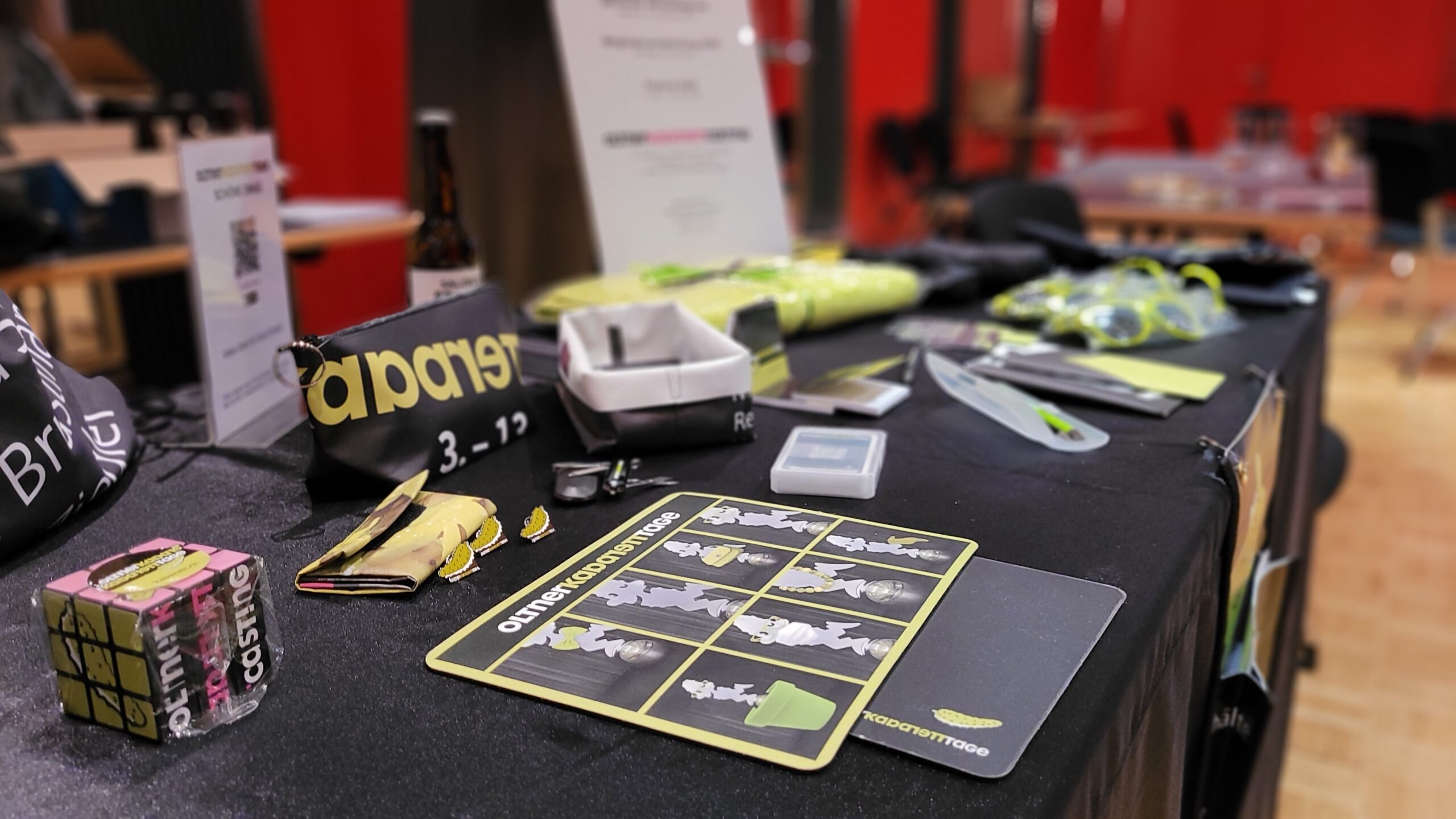 Die Fan-Artikel der Oltner Kabarett-Tage können Sie während den Veranstaltungen der Oltner Kabarett-Tage oder auf Voranmeldung in der Geschäftsstelle kaufen.
